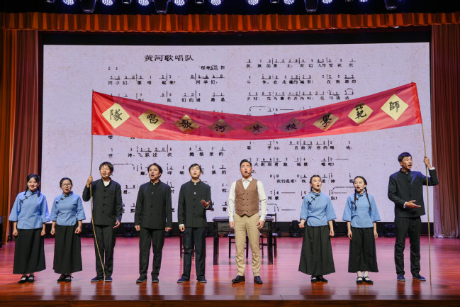 中国语言文学学院汉语言文学23-4班学生蔡思佳说:“剧中师生合力建设校园、印刷教材,歌声嘹亮、气势恢宏的黄河歌唱队队歌、充满力量与正义的歌舞《囚徒歌》……每一幕场景都让我深受震撼,也深感振奋。作为师大学子,我感受到了中国共产党人的奋斗精神和对理想信念的坚持。历史的长河中,这样一段岁月,承载着特殊的使命和伟大的精神,熠熠生辉,光芒万丈,闪耀至今!”
