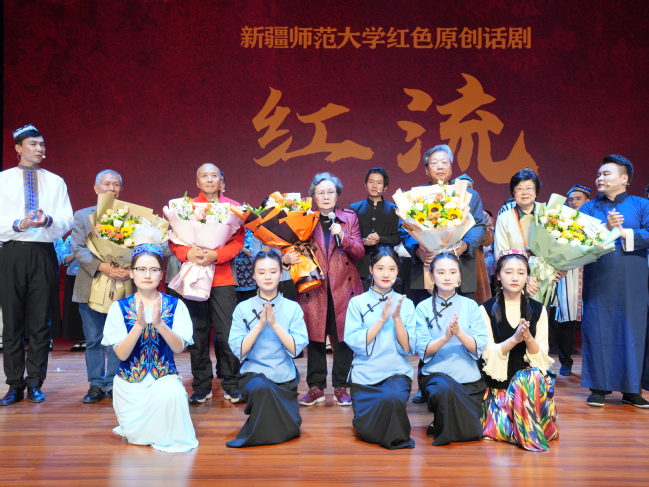 演出结束后,剧中人物、曾在师范学校任教的共产党人文斐然、许亮、刘子平的亲属王星汉、许健康、马苏苏,曾任省立一中校长、巴楚县县长的共产党员李云扬之子李胜利以及永利官网建校第一任校长高琳之女高峡受邀上台,由学生代表献花并向他们致敬。刘子平的外甥女马苏苏在讲话时潸然泪下,感谢师生没有忘记自己的父辈,回溯了自己孩童时期在新疆的狱中记忆和抗争故事,深情讲述令在场观众热泪盈眶。