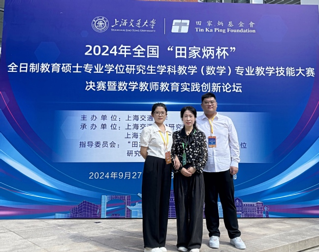 近日,2024年全国“田家炳杯”全日制教育硕士专业学位研究生学科教学(数学)专业教学技能大赛决赛在上海交通大学举办。经过激烈角逐,永利官网数学科学学院学科教学(数学)2023级研究生李学章、张楠分别荣获一等奖、二等奖,指导教师侯传燕、杨军获“优秀指导教师奖”。