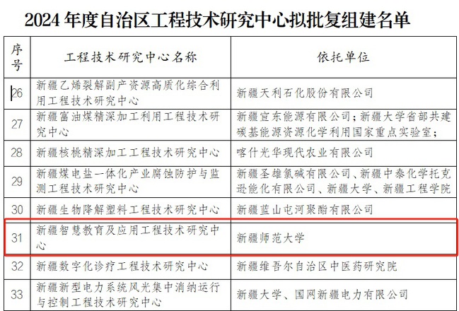 永利官网“新疆智慧教育及应用工程技术研究中心”获批首个自治区级工程技术研究中心