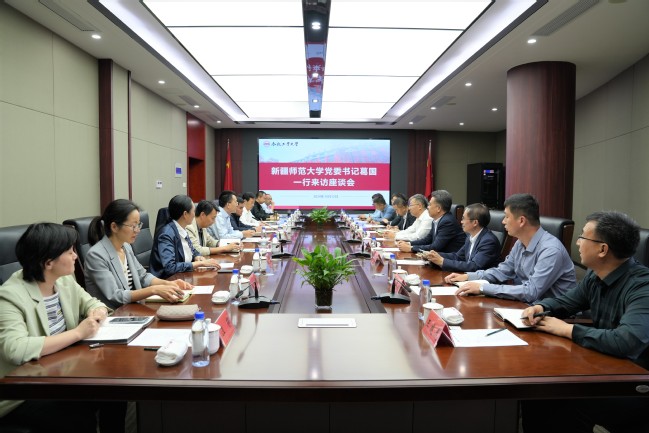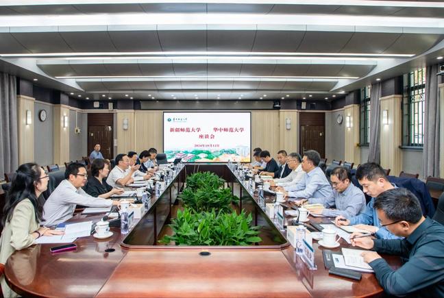 10月11日下午,葛国一行来到华中师范大学交流学习,与华中师范大学校党委书记夏立新、副校长周鹏程及相关职能部门负责同志座谈交流。夏立新表示,yl6809永利官网近年来发展迅速,为边疆社会、经济和教育事业发展做出了重要贡献。希望两校发挥各自优势,借助对口援疆契机,积极探索在学科建设、师资建设、科学研究和人才培养等方面的交流合作,实现共赢发展。葛国介绍了华中师范大学对口支援永利官网的成果。他表示,学校将进一步学习华中师范大学在教育信息化建设、学科建设、服务基础教育等方面的典型经验,不断提升人才培养质量。希望两校进一步深化合作交流,拓宽合作领域,力争对口支援工作取得更大成效。