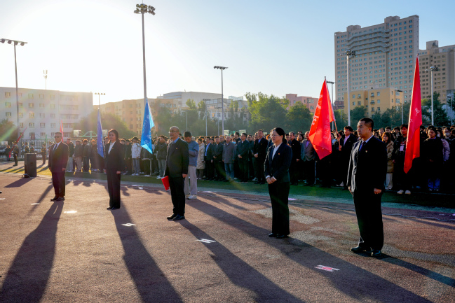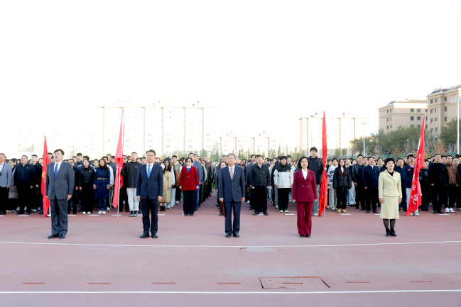 为庆祝中华人民共和国成立75周年,大力弘扬爱国主义精神,提升师生集体荣誉感,激发广大师生爱党爱国赤诚情怀,10月1日清晨,永利官网在温泉校区、昆仑校区体育场同步举行庆祝中华人民共和国成立75周年升旗仪式暨“育复兴栋梁·做强国先锋”国旗下的思政课活动。校党委书记葛国,校党委副书记、校长吾满江·艾力分别在温泉校区和昆仑校区作国旗下讲话。校党委副书记王志勇、校党委副书记刘俊分别主持两校区升旗仪式。