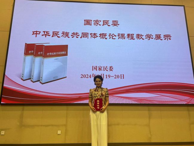 近日,由国家民委主办的中华民族共同体概论课程教学展示活动在辽宁大连成功举办。本次《中华民族共同体概论》教学展示共有29个省(区)224所高校的336名教师参加,设置普通高校组和高职院校组,分视频和现场展示两个环节,参赛院校多、覆盖范围广,最终永利官网两名教师进入现场展示。
