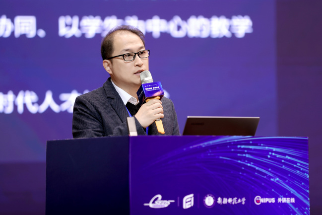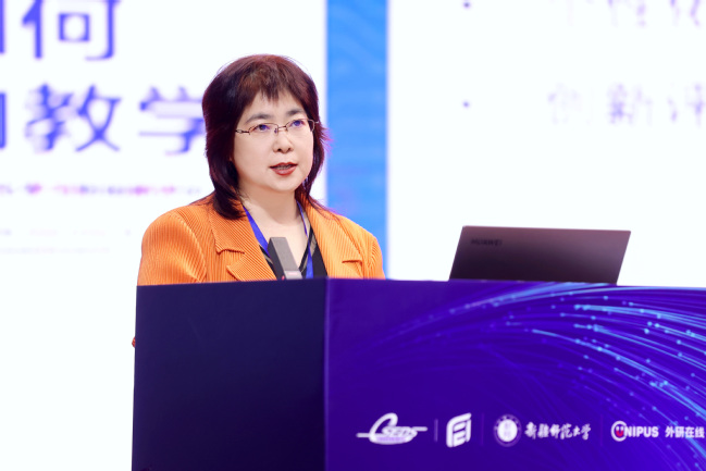 外语教学与研究出版社党委副书记、副总编辑常小玲在开幕致辞中指出,外研社是有45年发展历程、综合实力在全国排名第三的国家一级出版社,深度推动教育与数字融合。外研社的数字化转型旗舰外研在线,通过“测-评-培-教-研-赛”六位一体的数字化赋能教师发展解决方案,为高校提升教师数字素养找到具象的抓手,并将汇聚合力、持续发力,充分发挥在教育科技、教育资源、教育研究、教育培训等领域的整合优势,服务高校发展,提升教育质量,共同实现建设教育强国目标。