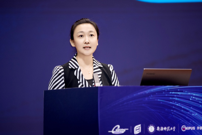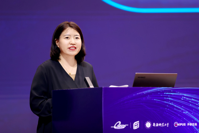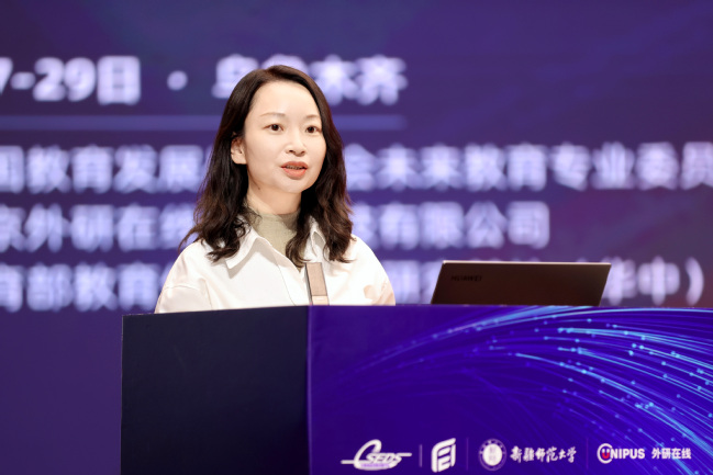 北京外研在线数字科技有限公司首席内容官徐一洁主持论坛主旨报告环节