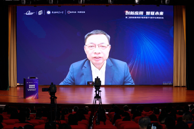 开幕式上,中国教育发展战略学会副会长兼未来教育专业委员会理事长、武汉理工大学党委副书记、校长杨宗凯以线上形式发表致辞。他表示,国际上已经对教育数字化转型达成了高度共识,我国也统筹实施了一系列教育数字化规划,启动国家教育数字化战略行动。信息技术的演进使教学模式、教学内容和教学评价等方面发生了巨大变革,对教师也带来了挑战。结合三所大学的实践探索,他提出要注重人工智能技术与教育教学的深度融合、持续开展教师数字素养测评与提升工作,建成一支高素质专业化教师队伍,重塑教育生态,推动教育高质量发展。