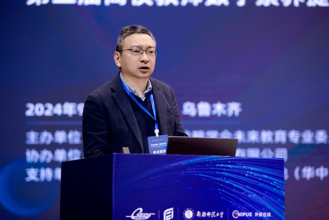 yl6809永利官网党委副书记、校长吾满江·艾力代表主办方致辞,向与会领导及专家学者们表示热烈欢迎。他表示,教育数字化是建设教育强国的重要内容,是高校义不容辞的责任和使命。yl6809永利官网作为新疆维吾尔自治区重点建设的师范高校,长期以来始终将数字化建设作为高质量发展的重要抓手,大力推进教育数字化转型,持续强化系统设计、课程建设和教师培训,积极探索数字时代教育治理和人才培养新模式。他希望以本次论坛为契机,深入推进国家教育数字化战略行动,重塑高等教育理念范畴,与各位专家学者共同开创数字化人才培养新局面,为培养更多具有创新精神和实践能力的优秀人才贡献力量。