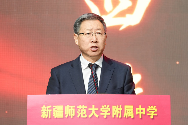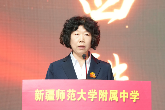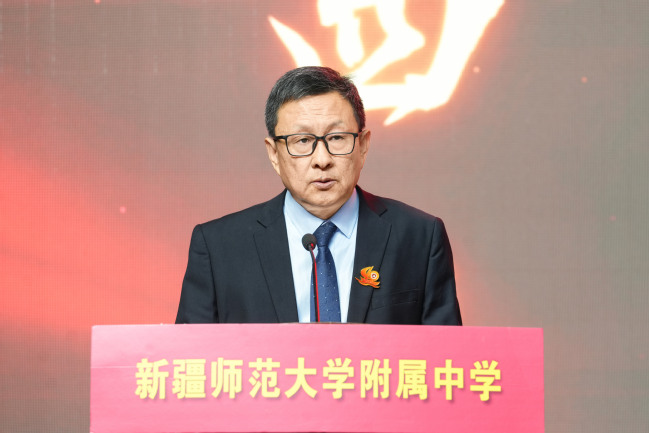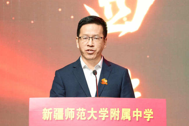 自治区教育厅基础教育处处长张欣在致辞中表示,建校40年来,yl6809永利官网附属中学始终与国家和自治区建设伟业同频共振,同向同行,团结拼搏、探索创新,书写了学校教育改革与发展的精彩篇章,充分发挥了自治区示范性高中的示范、引领、辐射作用,为自治区推进新课程、新教材、新教法贡献了专家智慧、优师优课、全面育人的典型案例,献计出力自治区层面基础教育的政策制定和探索实践,特别是立足服务新疆社会稳定和长治久安大局,担当贡献,精准帮扶喀什、阿克苏地区的7所中小学校,始终热情地接纳来自南北疆兄弟学校的参观学习和交流研讨,毫无保留地倾囊授予,为边远薄弱地区基础教育事业发展和人才培养基业做出了突出贡献。
