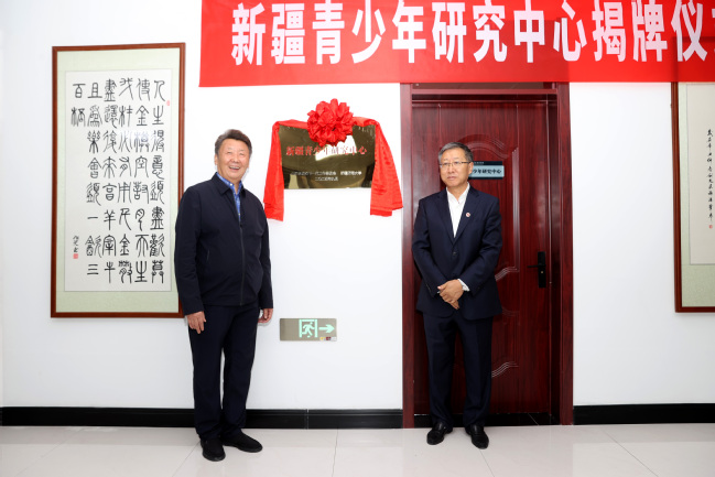 揭牌仪式上,巴代、葛国共同为新疆青少年研究中心揭牌。