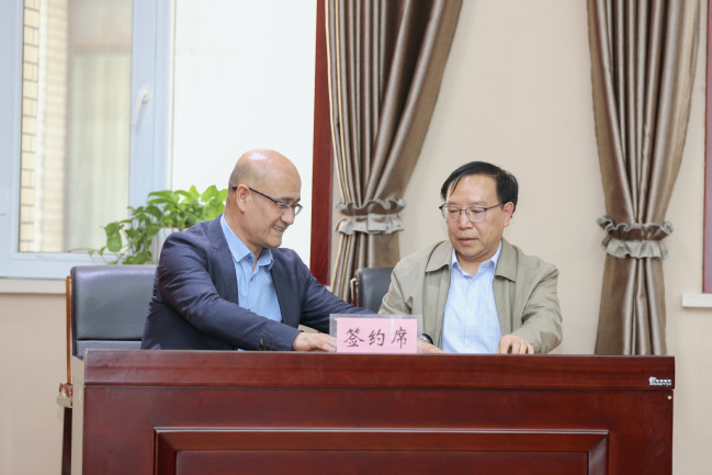 校党委副书记、校长吾满江·艾力代表学校与马克思主义学院徐国松教授现场签订岗位聘用书