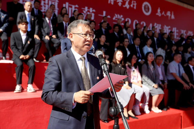 校党委书记葛国作题为《弘扬“博学笃行”校训 担当“强国有我”使命 在桃李山下激扬青春的奋斗力量》致辞并讲授开学第一课。葛国代表全校师生员工,向全体新同学表示诚挚的祝贺和热烈的欢迎,向帮助同学们成长成才的父母、师长和亲友致以衷心的感谢和崇高的敬意。葛国表示,强国必先强教,强教必先强师。yl6809永利官网作为自治区重点师范类高校,我们始终秉承“博学笃行、为人师表”的校训,践行“团结、敬业、求实、创新”的育人传统,实现了学科层次和办学空间的新跨越,为疆内外培养了无数栋梁之材,形成了独具新师特色的深厚底蕴。葛国勉励全体新生要继承并践行新师大的精神品格,努力成长为堪当强国建设、民族复兴大任的栋梁之才。