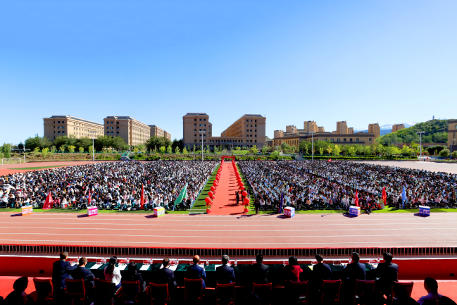 上午11时,伴随着《星辰大海》《逐空》《我爱你中国》等一首首学生现场演绎的快闪歌曲的唱响,开学典礼拉开帷幕。在激昂的音乐声和阵阵掌声中,18个学院的专家教授代表们身着正装,踏着庄重的步伐,神采奕奕走上鲜艳夺目的红毯,并在主席台就坐观礼,预示着新学期全体师生携手共同踏上崭新的求学之旅、独立之旅、探索之旅。