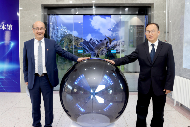 校党委副书记、校长吾满江·艾力和校党委副书记刘俊共同开启生物标本馆