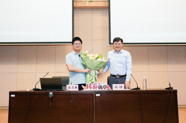 高靖首先对翁清雄教授的到来表示热烈欢迎,并向翁清雄教授介绍了永利官网“传薪讲堂”作为“大思政课”品牌活动在学校思政工作中发挥的作用和意义。