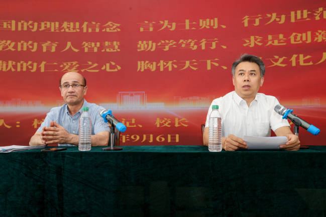 在中华人民共和国成立75周年和第40个教师节到来之际,为深入贯彻习近平新时代中国特色社会主义思想、党的二十大和二十届二中、三中全会精神,学习贯彻习近平总书记关于教育的重要论述精神,认真落实《中共中央国务院关于弘扬教育家精神加强新时代高素质专业化教师队伍建设的意见》,激励广大教师潜心育人,争当“四有”好老师,切实提高新入职教师育人水平,9月6日下午,校党委副书记、校长吾满江·艾力为2024年新入职专任教师讲授“践行教育家精神 担当新时代使命”入职教育第一课。全校67名2024年新入职专任教师及受援建院校12名跟岗学习教师参加活动。活动由校党委常委、副校长王世杰主持。