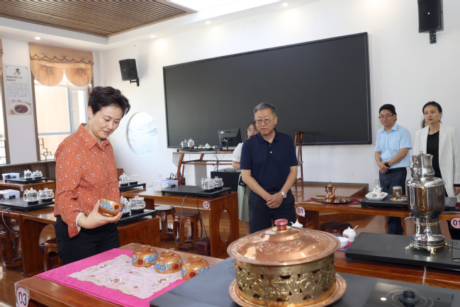 座谈前,席茹一行在永利官网铸牢中华民族共同体意识教育实践基地和附属中学参观调研。