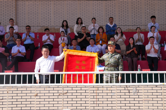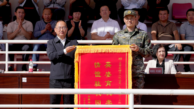 校党委副书记王志勇向承训部队赠送锦旗