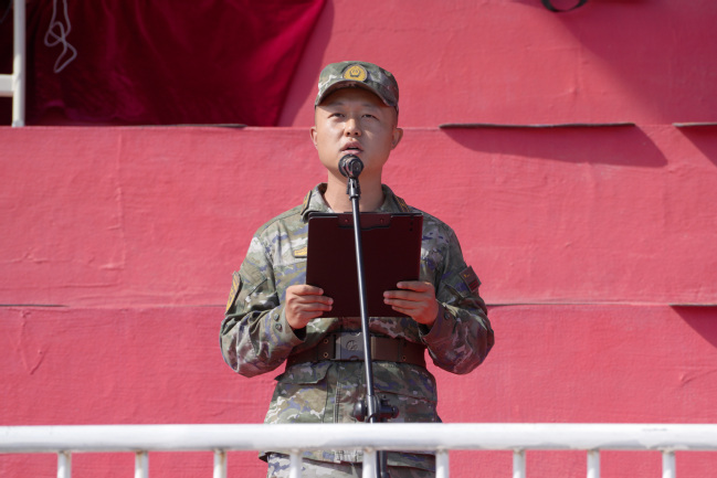 新疆武警总队机动第一支队机动二大队中校大队长段泽涛在昆仑校区讲话
