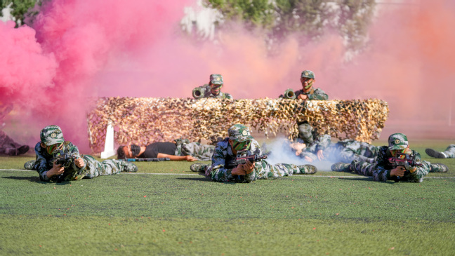 上午10时30分,大会在庄严的国歌声中拉开了序幕。5400余名参训学生进行了分列式、队列动作、擒敌拳、单兵战术的示范表演。大会还对在军训工作中涌现出来的6个先进单位、18名优秀辅导员、78名优秀教官、253名军训标兵进行了表彰奖励并向承训部队赠送了锦旗。