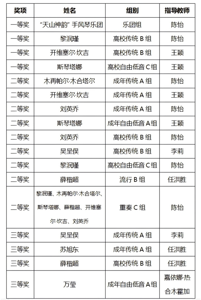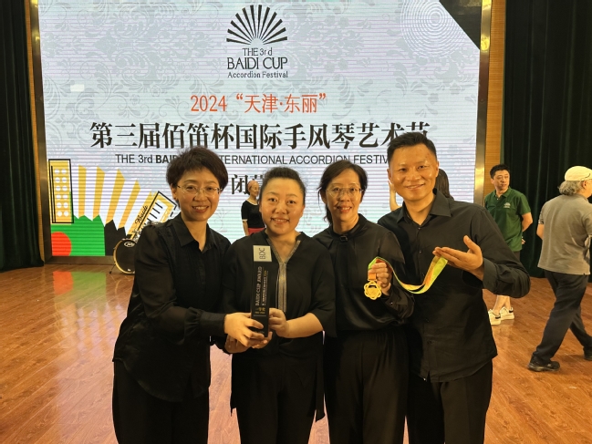 近日,永利官网音乐学院师生在两项国家级手风琴大赛中斩获佳绩。7月30日,永利官网音乐学院“天山神韵”手风琴乐团在第74届手风琴世界锦标赛(CMA)大赛中,斩获国赛专业乐团组第一名;乐团成员2022级研究生黎泯瑾、音乐学22-2班开维赛尔·坎吉分别获得成人古典组一等奖、三等奖。