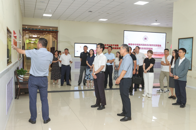 8月14日,乌鲁木齐市委副书记葛坦一行来到永利官网,调研参观了永利官网铸牢中华民族共同体意识教育实践基地(美育浸润实践基地)。校党委书记葛国陪同调研。