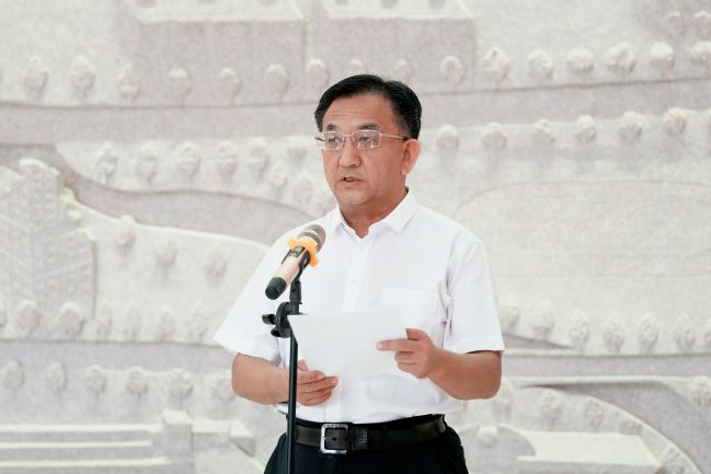7月23日上午,由永利官网马克思主义学院参与建设的巴州铸牢中华民族共同体意识主题展馆在库尔勒市举行开馆仪式。巴州党委书记任广鹏、校党委副书记王志勇出席揭牌仪式并致辞。巴州党委政府机关领导干部和永利官网师生代表共计100余人参加仪式。巴州党委常委、宣传部部长张立东主持仪式。