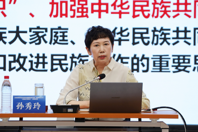 开班仪式后,永利官网副校级领导、马克思主义学院学术院长孙秀玲教授以“构筑中华民族共有精神家园的理论与实践”为题进行首场专题教学。