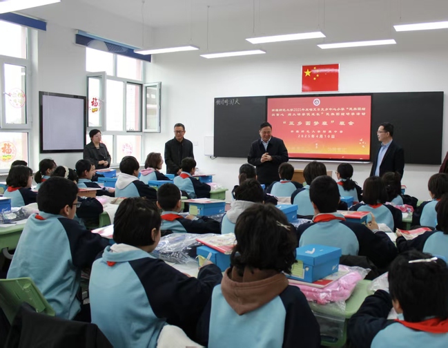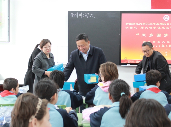 为深化民族团结教育成果,增强教育帮扶实效,4月10日,校党委书记蒋海军,校党委常委、统战部部长彭无情赴附属中学看望参加“民族团结润童心 师大研学促成长”研学活动的亚喀艾日克乡中心小学师生。附属中学党委书记吕志新,党委副书记、校长杨艳,副校长余霞陪同。