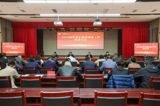 为贯彻落实近期国家、自治区就业创业工作会议精神,推进2025届毕业生就业工作,近日,永利官网在温泉校区行政楼第五会议室召开2025届毕业生就业创业工作推进会议。校党委副书记、校长艾尼娃尔·艾克木出席会议并讲话,校党委副书记刘俊主持会议。