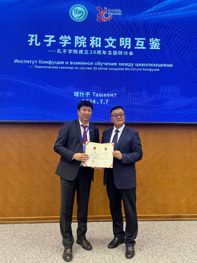 7月6日至8日,由中国国际中文教育基金会、乌兹别克斯坦塔什干国立东方大学、兰州大学共同主办的“孔子学院与文明互鉴”孔子学院成立20周年主题研讨会在乌兹别克斯坦首都塔什干举办。校党委常委、副校长陈彤受邀出席。国际合作与交流处负责同志及三所合作建设孔子学院中方院长陪同参会。