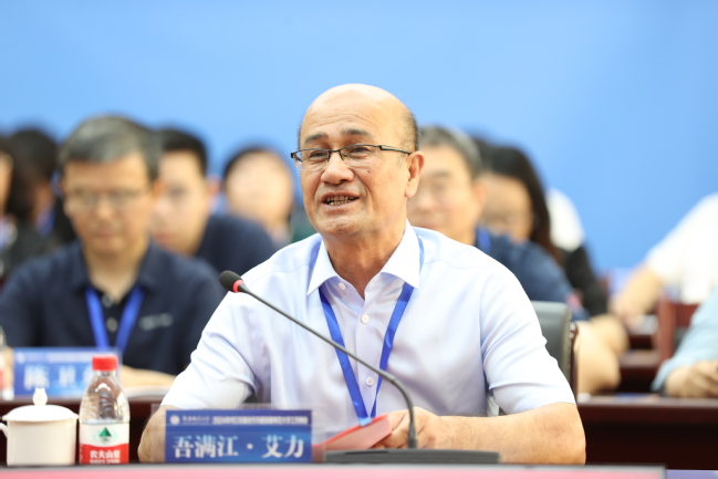 7月13日上午,2024年对口支援合作共建yl6809永利官网工作例会在永利官网温泉校区举行。中国科学技术大学、华东师范大学、大连理工大学、陕西师范大学、天津大学、中央民族大学、武汉理工大学、华中师范大学、东北师范大学、合肥工业大学、西安外国语大学、五邑大学等来自全国12所对口支援与合作共建高校的校领导、相关职能处室、学院领导和专家学者齐聚乌鲁木齐,共商教育援疆工作大计,共叙对口支援深情厚谊,共谋合作共建思路方案。我校领导、援疆干部及处级干部代表参加会议。校党委副书记、校长吾满江·艾力主持会议,校党委书记葛国致欢迎辞。