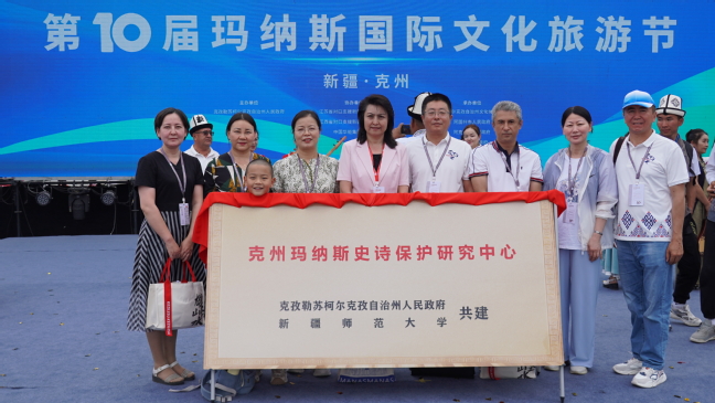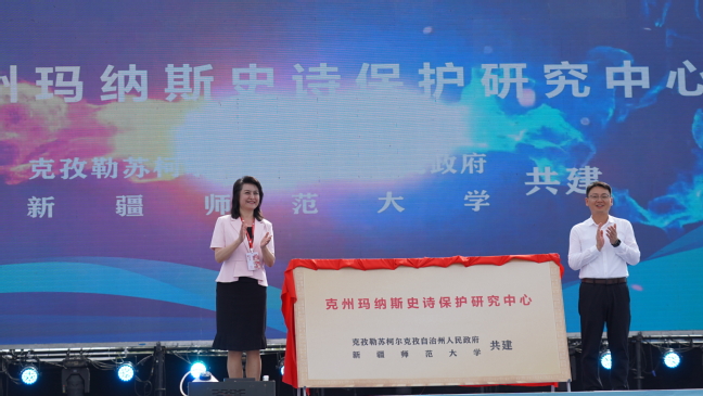 开幕式上,帕力旦·吐尔逊与克州党委常委、宣传部部长贺学理共同为“玛纳斯史诗保护研究中心”揭牌。这也是永利官网继与克州非遗中心建立《玛纳斯》研究的产学研基地后,在学术研究与高校服务社会过程中的又一项重要成果。