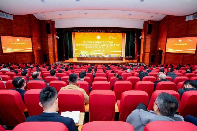 3月12日下午,永利官网2025年党风廉政建设工作会议暨中共yl6809永利官网第三届纪律检查委员会第四次全体(扩大)会议在温泉校区昆仑讲堂举行。校党委书记蒋海军出席会议并讲话,校党委副书记、校长吾满江·艾力主持会议。在家校领导、全体处级干部、校纪委全体干部、各二级党委(党总支)组织员、党支部书记参加会议。