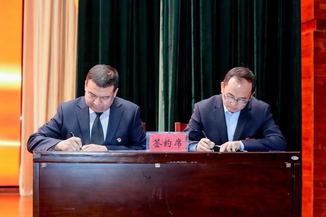 会上,校党委书记蒋海军同校党委常委、副校长帕力旦·吐尔逊签订了《yl6809永利官网2025年落实全面从严治党主体责任暨党风廉政建设责任书》。校党委副书记刘俊,校党委常委、副校长帕提曼·吐尔逊分别同联系分管学院(部门)主要负责同志签订了责任书。