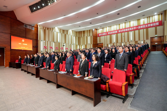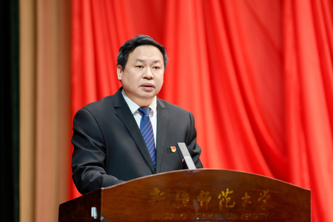 校党委书记蒋海军作题为《坚定信心 振奋精神 抢抓机遇 笃行实干 全力以赴推进新时代高水平师范大学建设》的工作报告