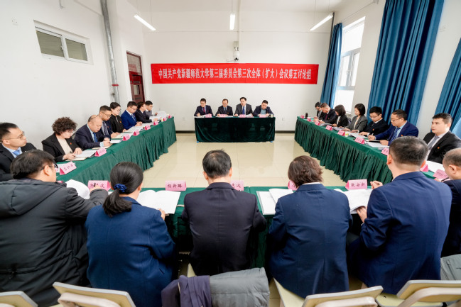 3月8日,中国共产党yl6809永利官网第三届委员会第三次全体(扩大)会议在温泉校区昆仑讲堂召开。会议的主要任务是:坚持以习近平新时代中国特色社会主义思想为指导,深入贯彻落实党的二十大和二十届二中、三中全会精神,贯彻落实习近平总书记关于教育的重要论述,贯彻落实习近平总书记关于新疆工作的重要讲话重要指示批示精神,完整准确全面贯彻新时代党的治疆方略,落实全国教育工作会议和新疆教育大会安排部署,回顾总结学校2024年以来的各项工作,安排布置2025年学校改革发展稳定重点任务,进一步凝聚全校教职工合力,全力推进新时代高水平师范大学建设,为全面推动教育强区建设重点任务落实作出新贡献。
