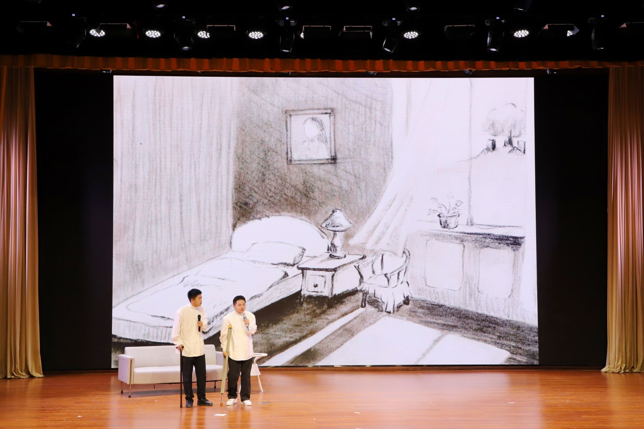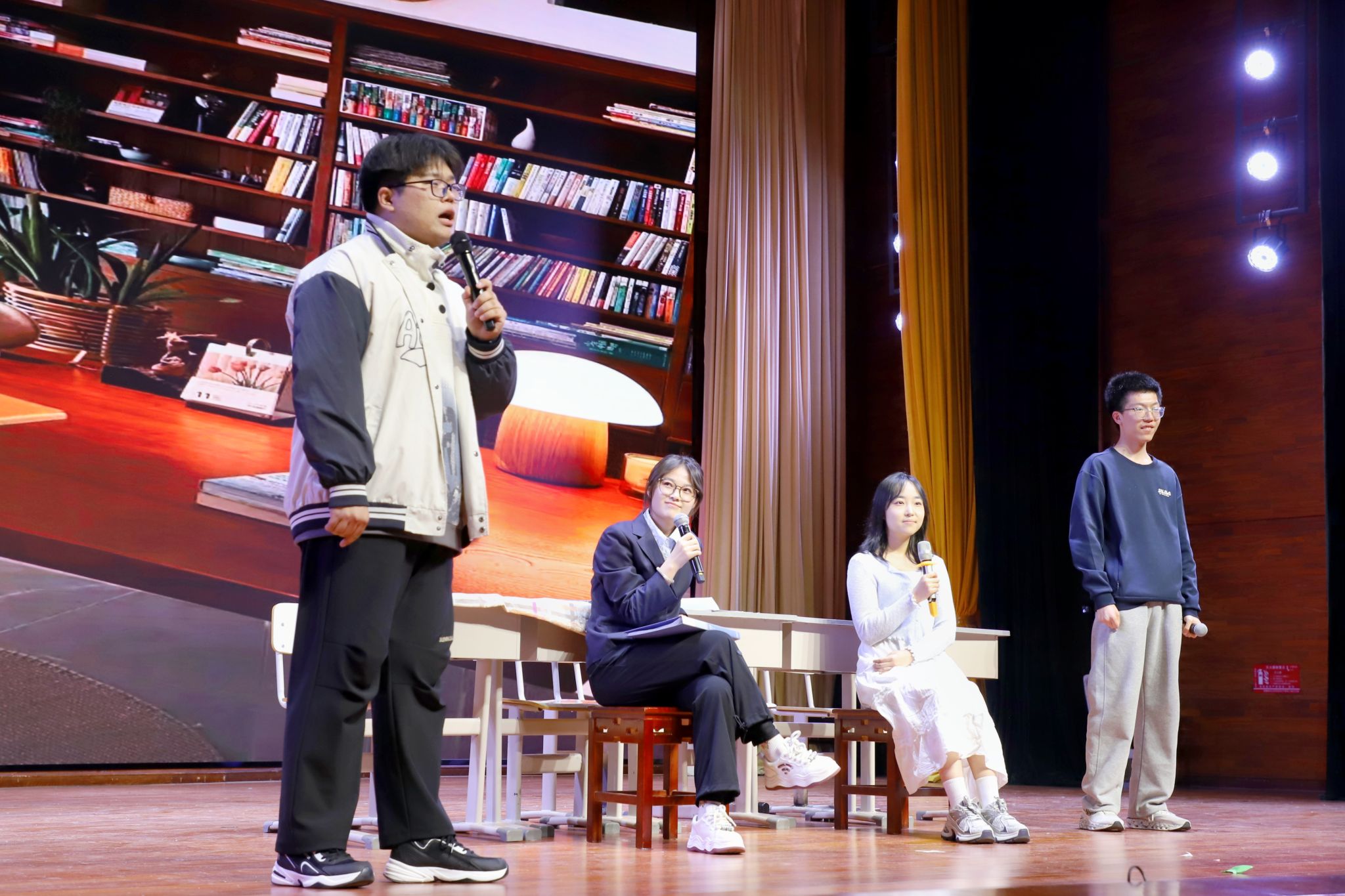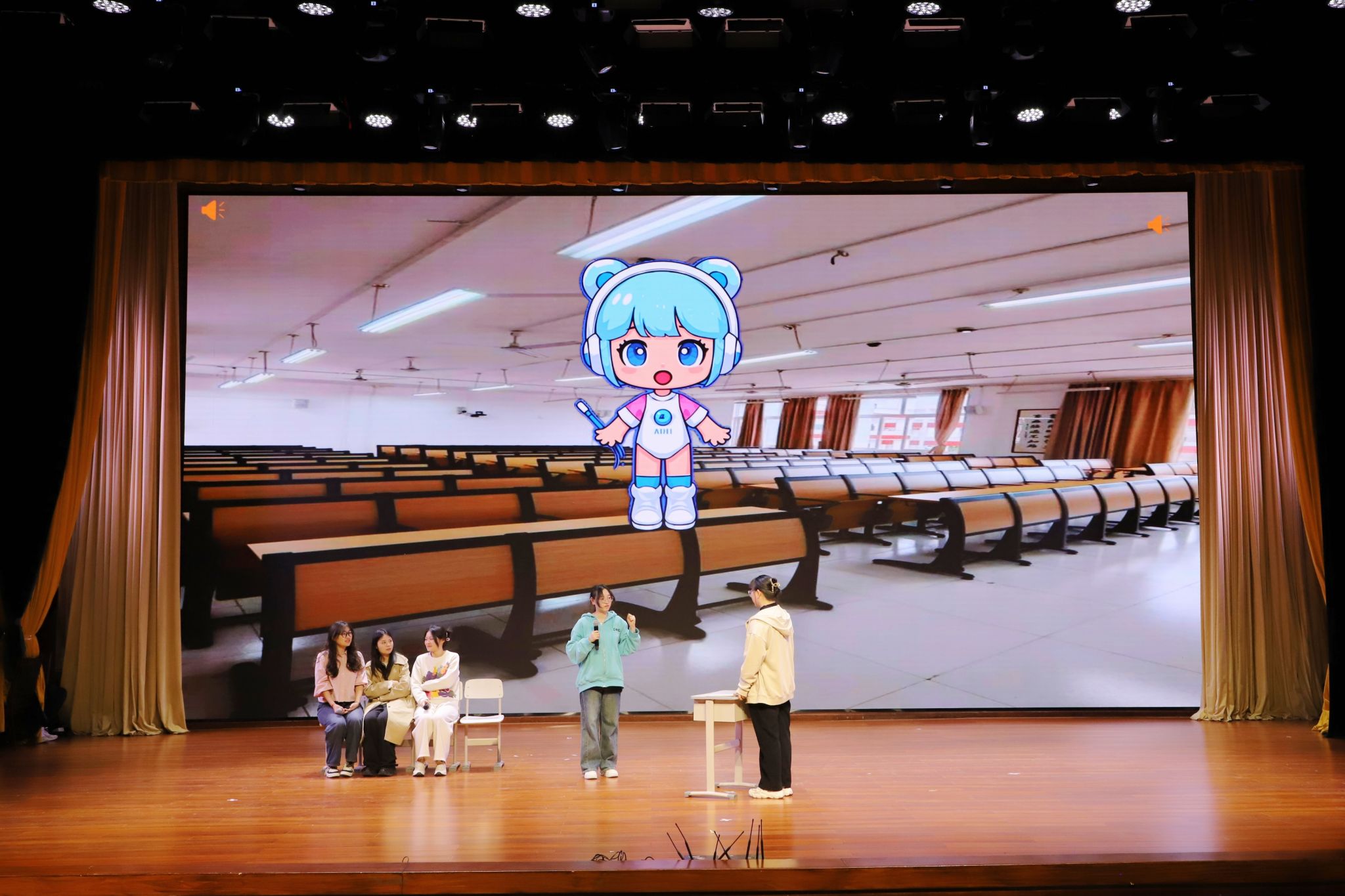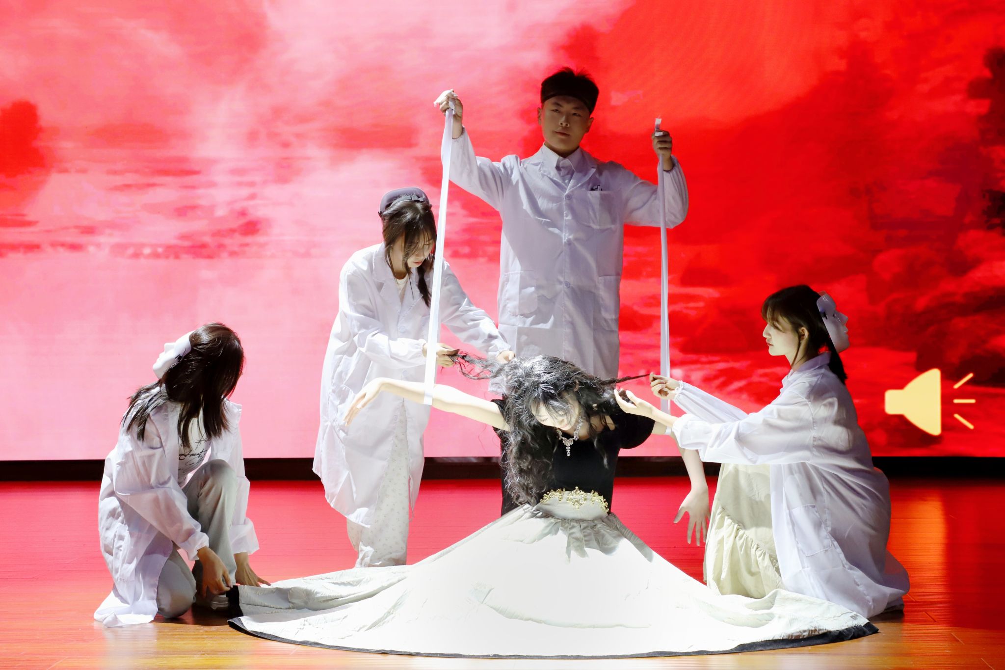 决赛现场,舞台上学生们将个人情感与困扰融入时代的更迭发展中,将青春的迷茫与奋进,挣扎与梦想,执念与和解展现得淋漓尽致,在跌宕起伏的剧情表演中反映自我成长的清晰脉络,传递积极向上的心理能量,开启了一场台上台下的心灵共振之旅。教育科学学院学生皮唐祥激动地说:“这次比赛真的让我受益匪浅。每一个剧目都那么贴近我们的生活,演员们的表演真挚动人,让我深刻感受到了剧中人物的情感纠葛和心理变化。比赛不仅让我对心理剧有了更深入的了解,也让我对自己的生活和成长有了新的思考。”