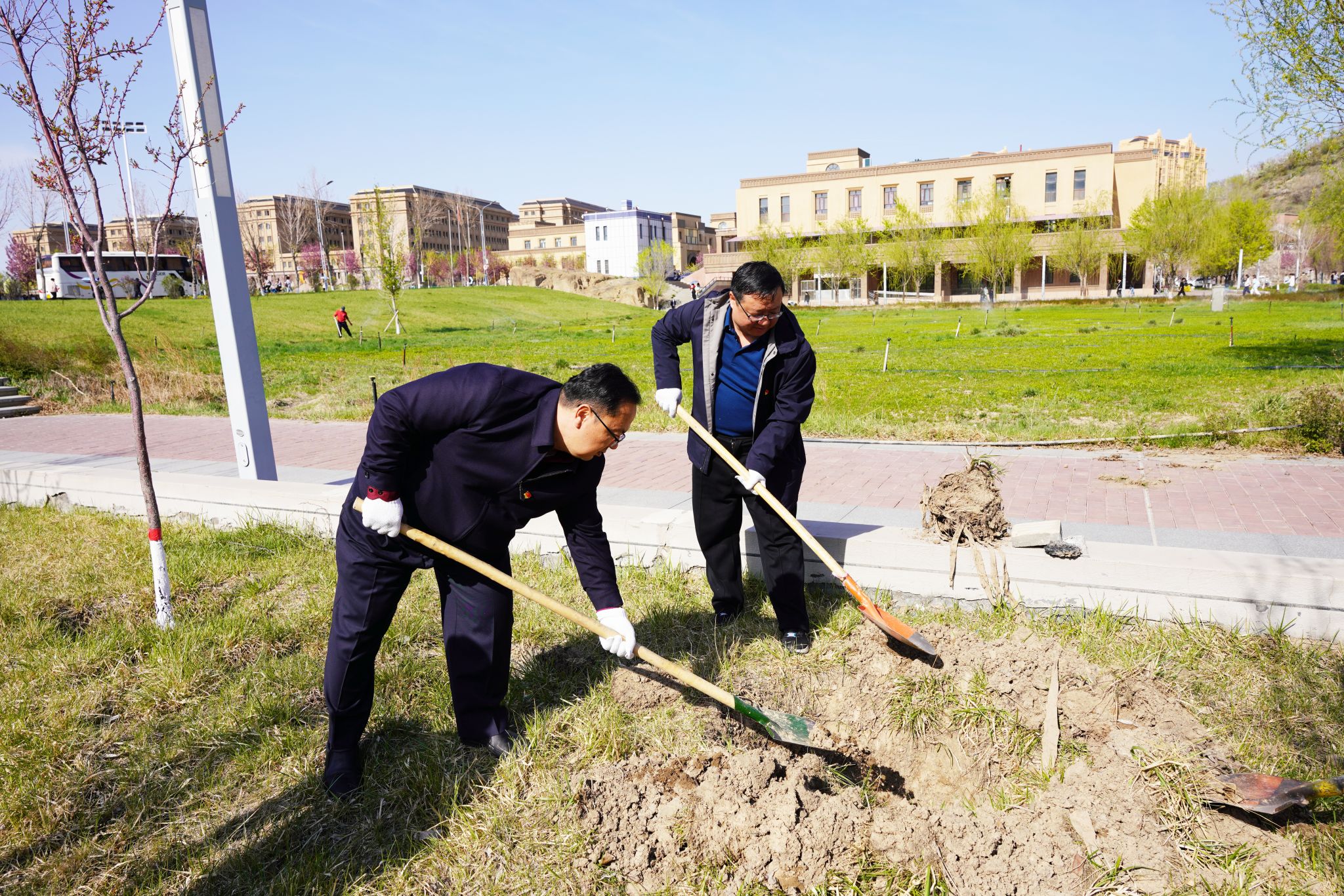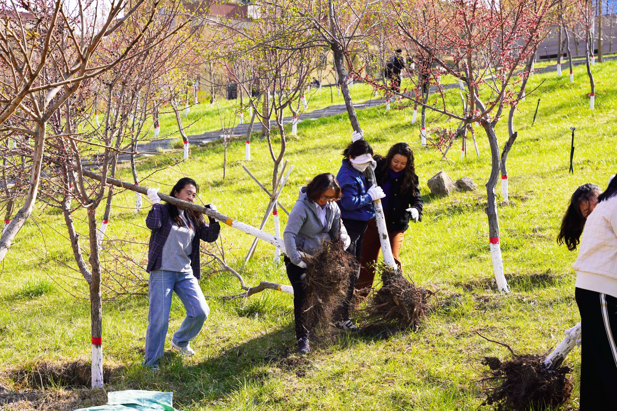 参观结束后,党员们在校园绿化区参加种树劳动实践。活动前,后勤专家进行种树技术培训。随后,党员们混合编组,划分责任区域,有序开展种树活动,现场分工协作、井然有序。