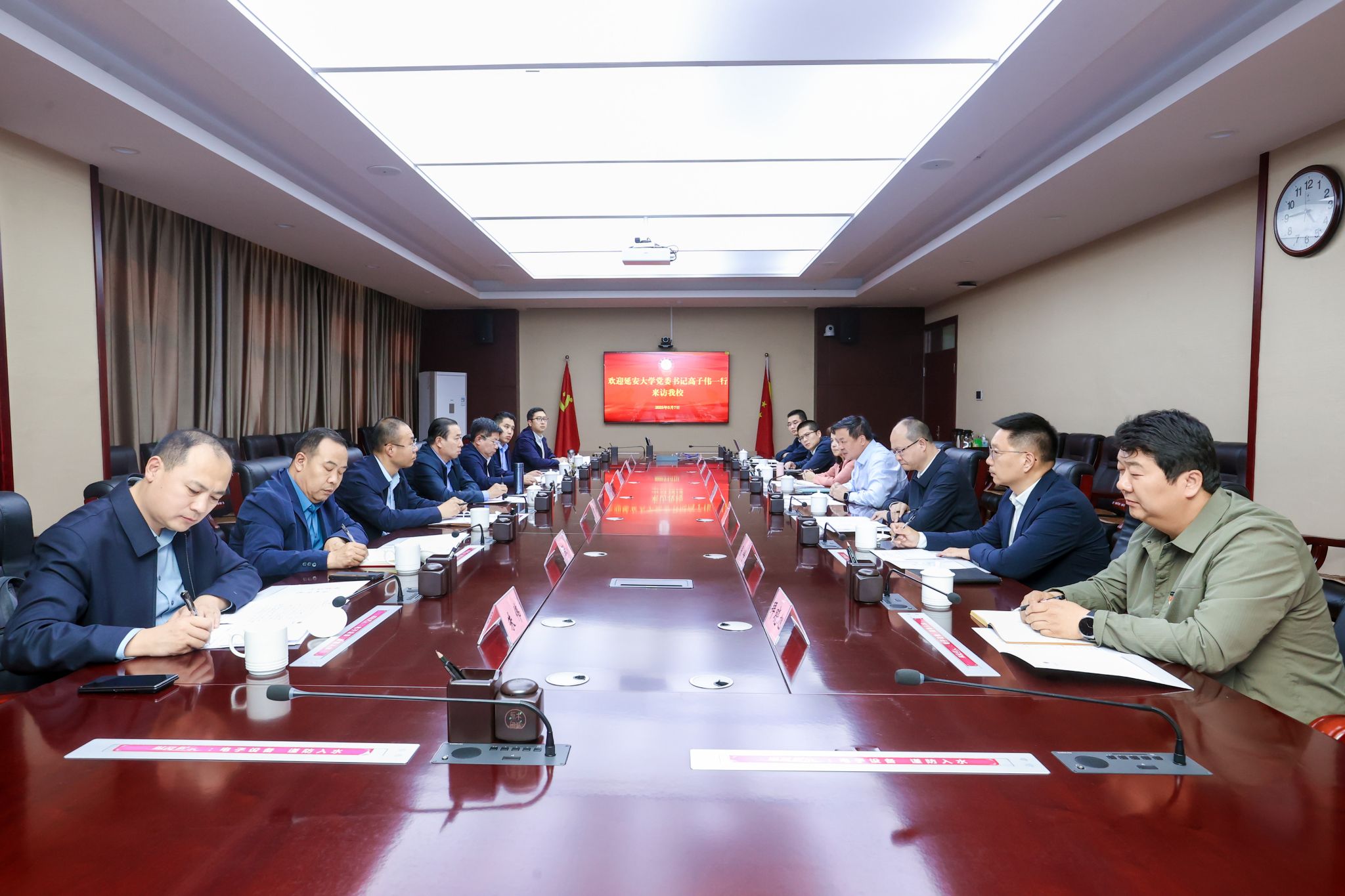 为深化校际合作、促进资源共享,5月7日,延安大学党委书记高子伟一行7人来永利官网调研交流。校党委书记蒋海军,校党委常委、副校长关明参加座谈。