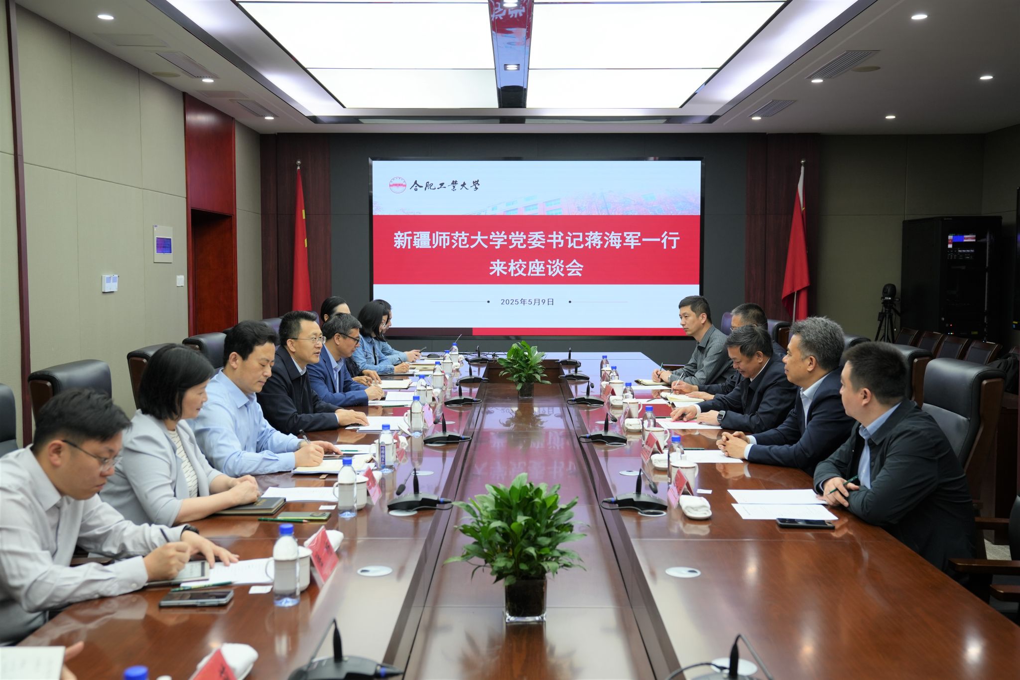 5月9日上午,蒋海军一行来到合肥工业大学交流学习。合肥工业大学党委书记于祥成、副校长丁立建及学校党政办、发展规划处、人力资源处、教务处、科研院等相关部门负责人出席座谈交流会。蒋海军首先就合肥工业大学正式与永利官网缔结对口支援关系表示真挚感谢,并针对当前学校发展的困境、未来对口支援合作的重点内容和需求做了针对性说明。他希望,学校能依托合肥工业大学在工科方面的优势,围绕高层次人才培养、重点科研项目申报、教学资源共享、干部交流等方面开展广泛而深入的合作,力争对口支援工作取得实质性成效。于祥成对蒋海军一行的来访表示热烈欢迎,回顾了在永利官网挂职期间的工作经历,并就合肥工业大学的发展情况作了专题介绍。他表示,合肥工业大学作为与永利官网正式缔结对口支援关系的高校,将在前期良好合作的基础上,进一步加大帮扶和支援力度,积极探索在学科建设、师资建设、科学研究和人才培养等方面可操作、更具体的帮扶措施,助力yl6809永利官网高质量内涵式发展。
