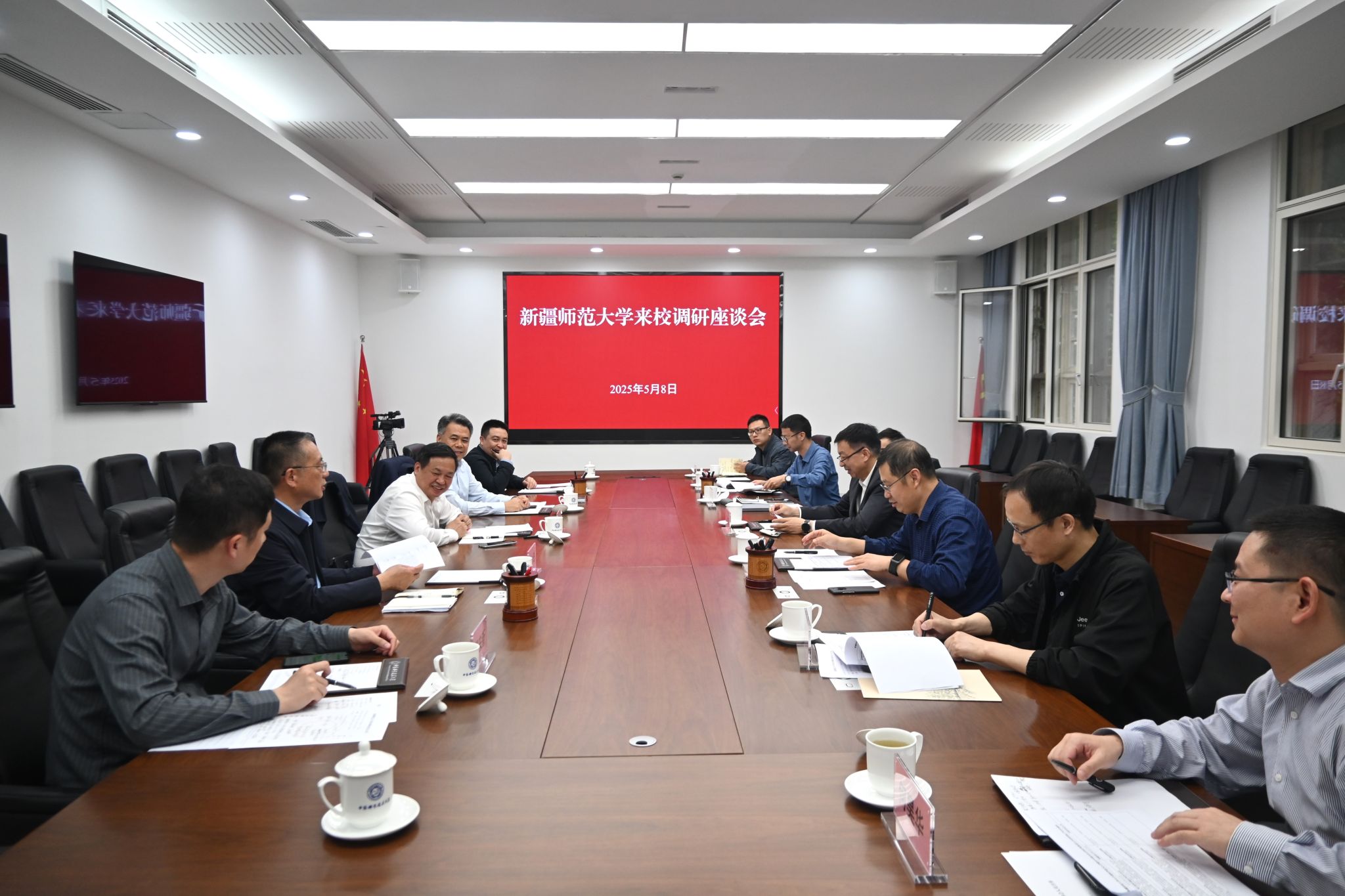 5月8日下午,蒋海军一行首先来到中国科学技术大学交流学习。中国科学技术大学党委书记舒歌群,党委常委、副校长邓建松及学校人力资源部、科研部、发展规划处等部门负责同志出席座谈交流会。座谈会上,蒋海军就学校近年来在师资建设、科学研究以及人才培养等方面的发展情况做了介绍,并希望进一步依托中国科学技术大学的优质资源,助力学校内涵式发展。舒歌群对蒋海军一行来访表示热烈欢迎,他表示,中国科学技术大学将一如既往地支持yl6809永利官网发展,希望两校未来能精准发力,依托联合申报重大科研项目、合作开展高水平研究、联合申报教学科研奖项等方式,绵绵用力、久久为功,助力学校尽快取得教学科研方面标志性成果的突破。