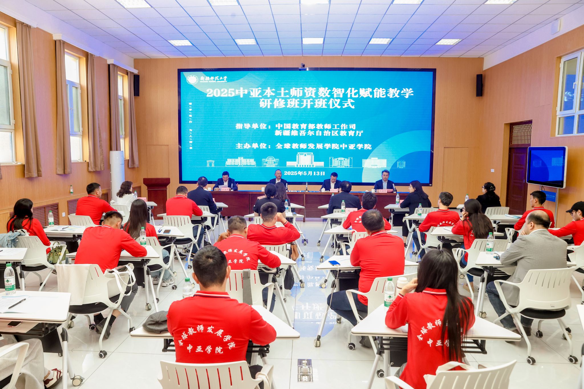 5月13日下午,全球教师发展学院中亚学院首期“中亚本土师资数智化赋能教学研修班”在永利官网举办。教育部教师工作司司长俞伟跃,自治区人民政府总督学、自治区教育厅党组成员孙长波,校党委书记蒋海军以及来自中亚五国的30名本土教师参加活动。校党委常委、副校长王世杰主持开班仪式。