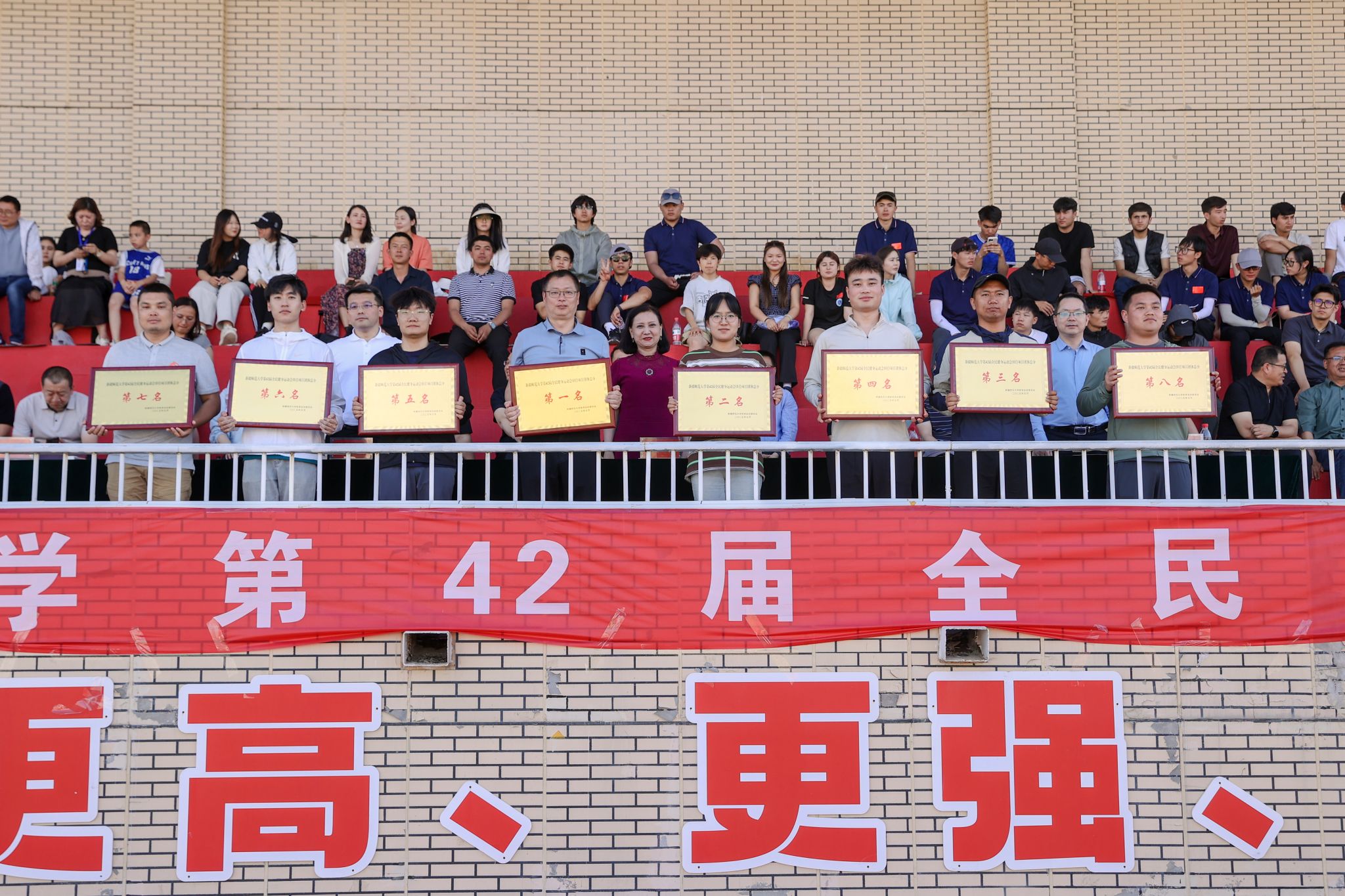 经过两天的激烈角逐,yl6809永利官网第42届全民健身运动会顺利完成各项预定赛程,于5月16日下午在温泉校区运动场闭幕。校党委常委、副校长帕提曼·吐尔逊,校党委常委、纪委书记蒋方珍,校党委常委、副校长刘晨江,校党委常委、统战部部长彭无情出席闭幕式并为获奖集体代表颁奖。校党委常委、副校长陈彤主持闭幕式。各学院和有关部门负责人、各学院师生代表参加闭幕式。