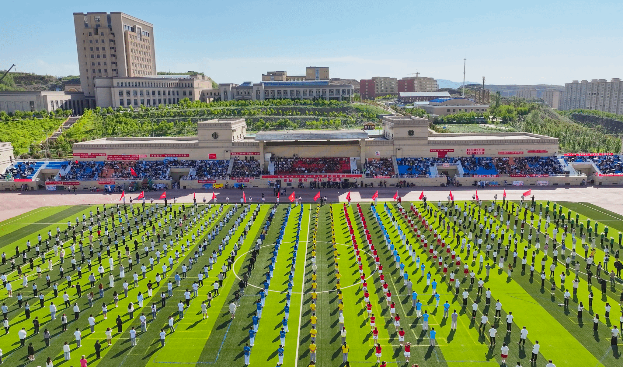 在校歌《放飞天山》的歌声中,yl6809永利官网第42届全民健身运动会胜利闭幕。