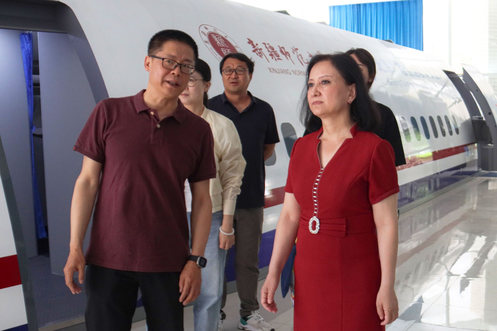 调研过程中,帕提曼 ·吐尔逊实地走访了美术学院教学楼、实验室、毕业生展厅、航空服务艺术与管理专业航空实训中心,详细了解了学院近年来在专业建设、学科建设、人才培养、师资队伍建设和服务社会等方面取得的成绩,听取了学院在长期办学中凝练的学科特色以及在改革发展中存在的问题。