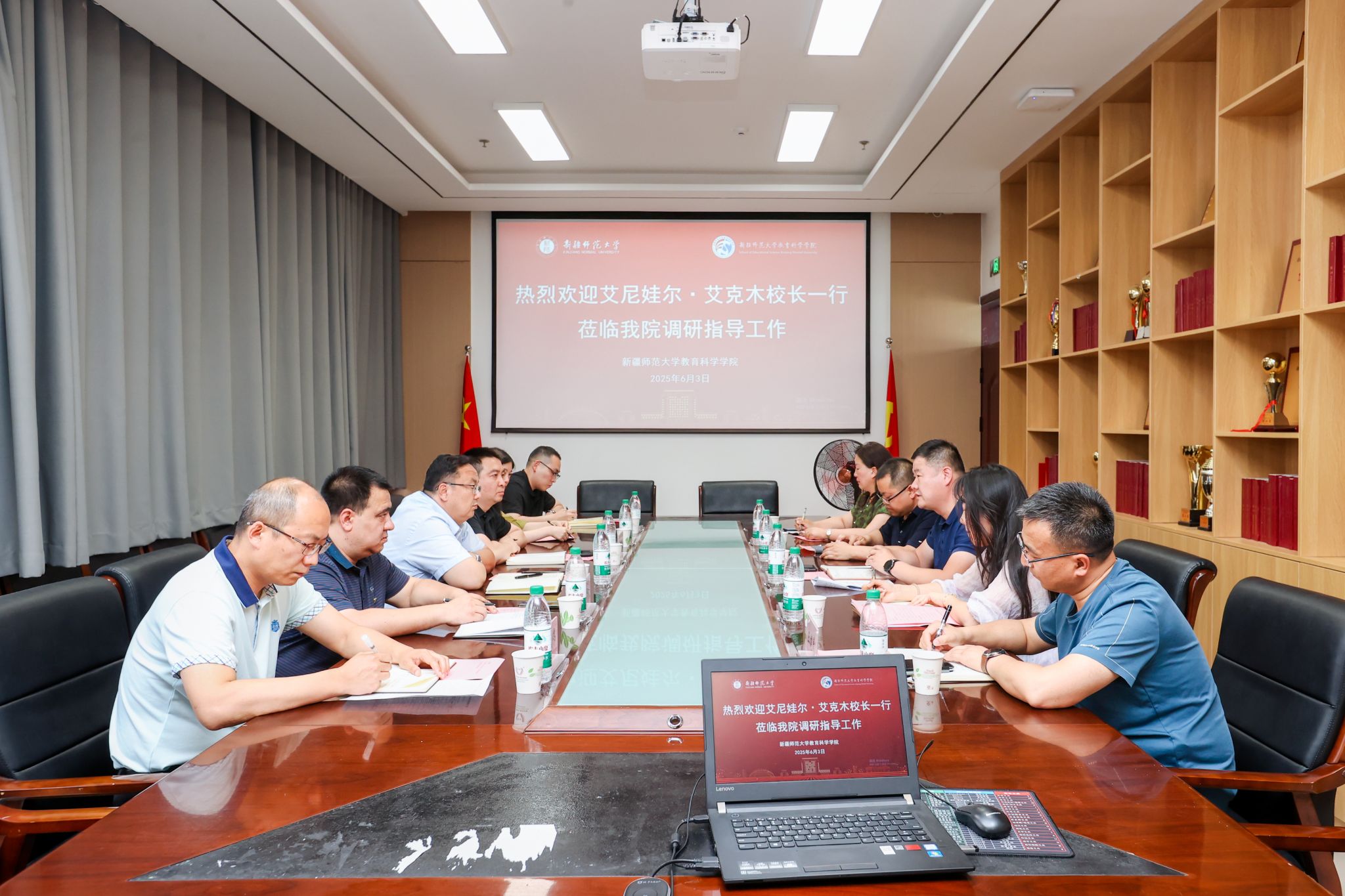 6月3日下午,艾尼娃尔・艾克木一行来到教育科学学院,与学院领导班子、教师代表进行座谈,详细了解了学院在基层党建、学科建设、师资队伍、人才培养、科学研究等方面工作的开展情况。教育科学学院党委书记多强主持座谈会。会上,教育科学学院院长程良宏从学院概况、专业与学位点建设、科学研究与人才培养、未来发展思考等方面对学院发展情况进行了详细汇报,分析了学院发展面临的挑战,介绍了下一步工作思考。