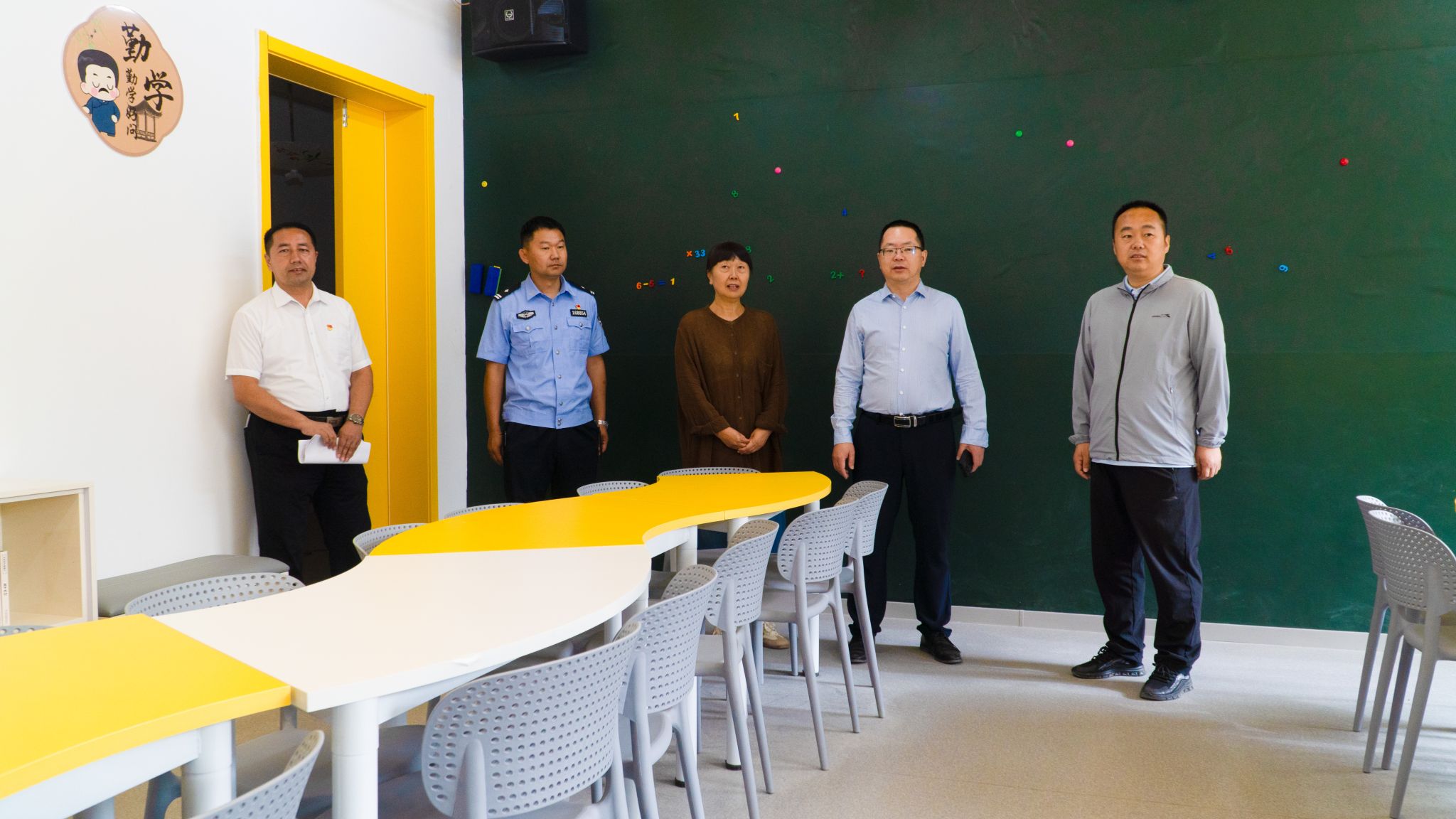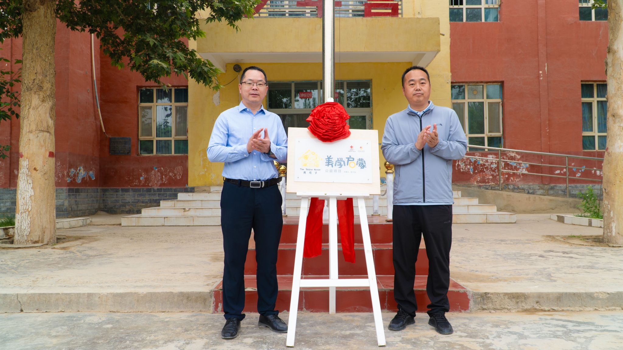 活动中,彭无情与常振平共同为“黄房子”美育教室揭牌,并实地调研“黄房子”美育教室及学校捐赠的图书室。
