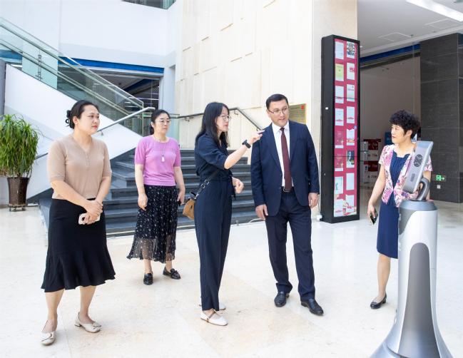 6月28日上午,乌兹别克斯坦共和国高等教育、科学和创新部教育机构运作分析司司长舒克拉特·乌马塔利耶维奇·雅库博夫教授访问永利官网。永利官网校长吾满江·艾力、国际合作与交流处负责同志参加座谈。座谈会由永利官网副校长季荣主持。