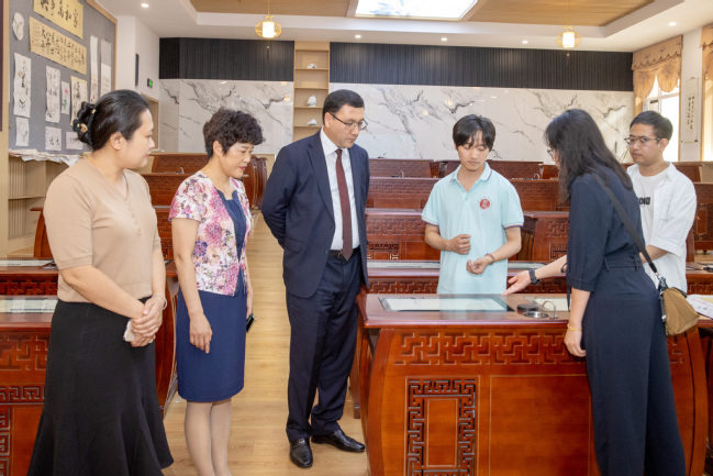 座谈前,季荣陪同舒克拉特司长参观了美育浸润实践基地、图书馆和科技楼。