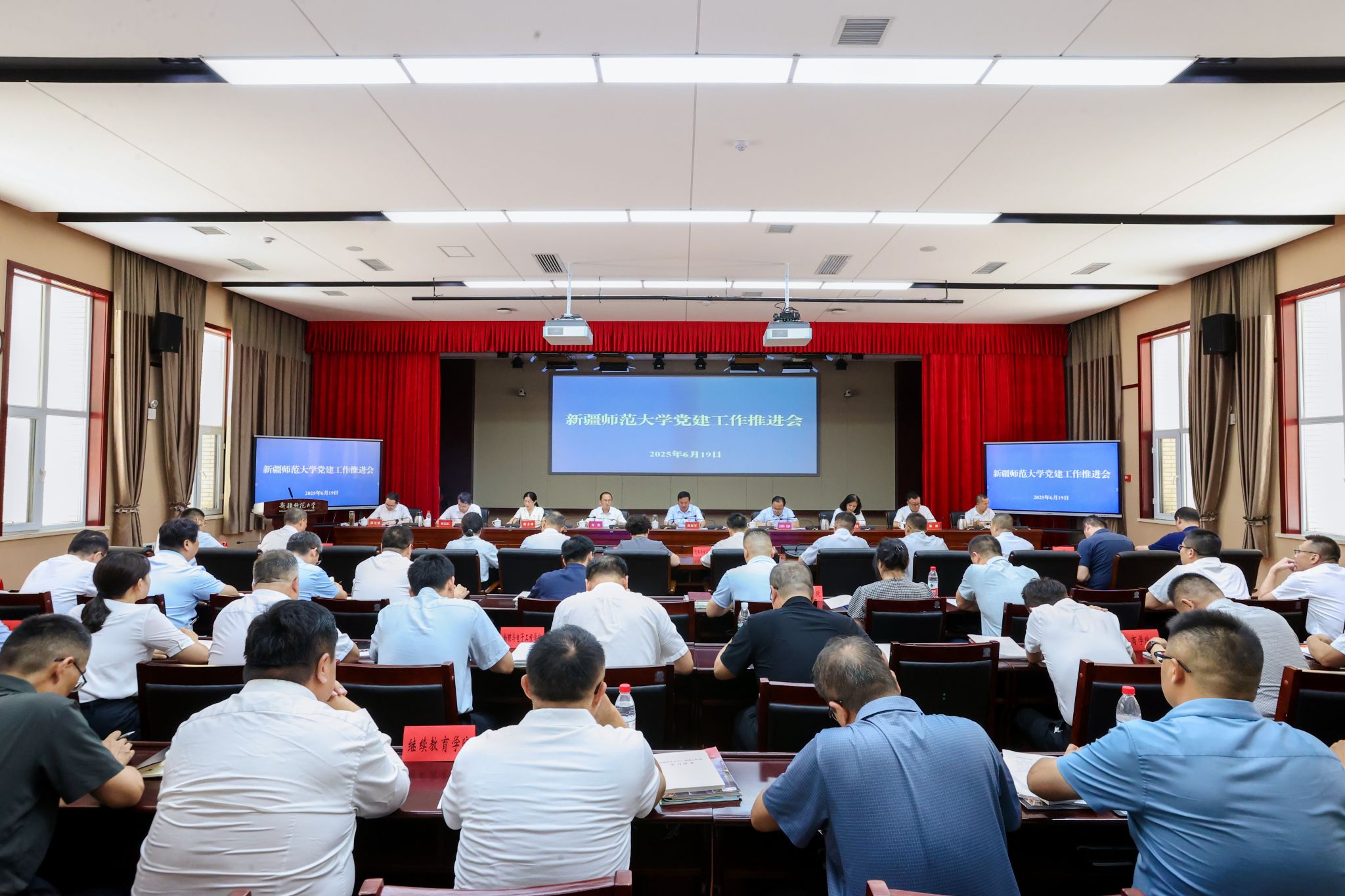 6月19日下午,永利官网2025年党建工作推进会在温泉校区行政楼第五会议室召开。校党委书记蒋海军出席会议并讲话,校党委副书记、校长艾尼娃尔·艾克木,校党委副书记刘俊,校党委常委、副校长帕提曼·吐尔逊,校党委常委、纪委书记蒋方珍,校党委常委、副校长陈彤,校党委常委、副校长刘晨江,校党委常委、组织部部长胡毅涛,校党委常委、统战部部长彭无情参加会议。